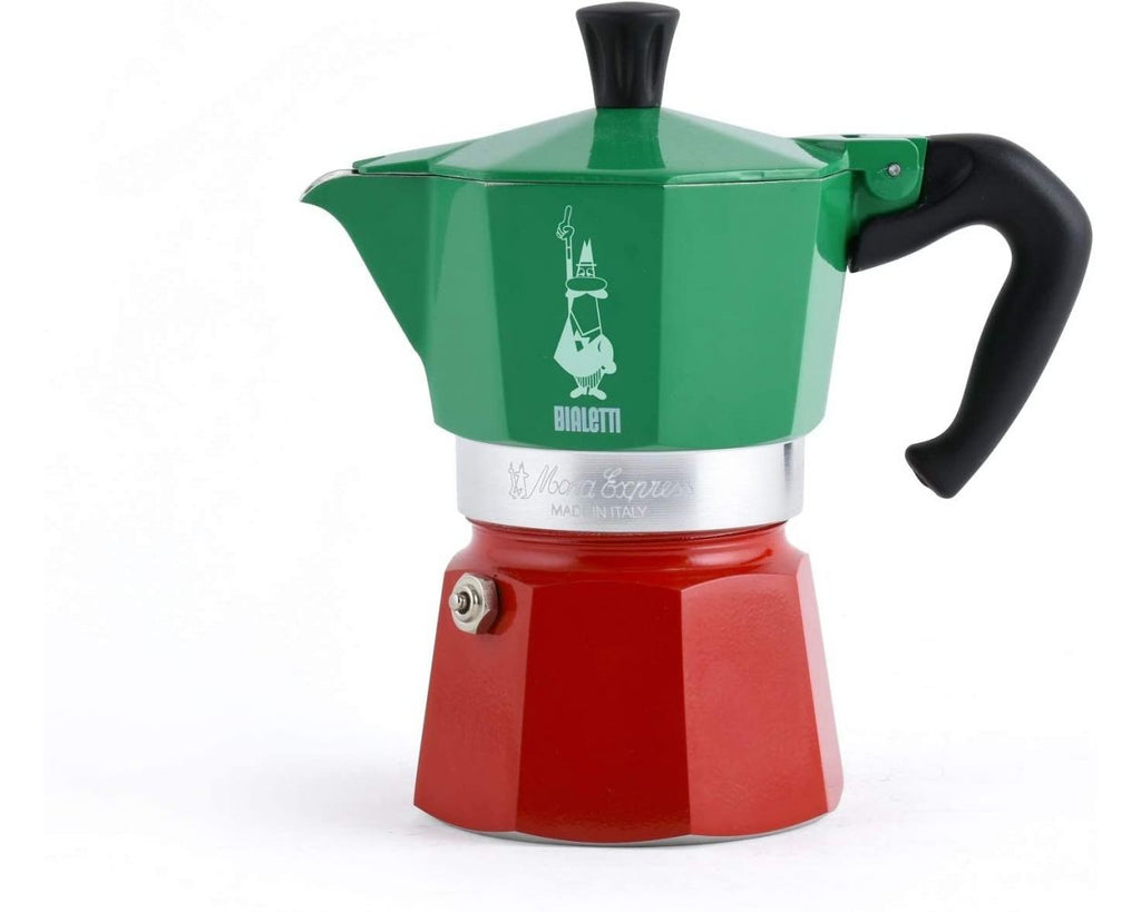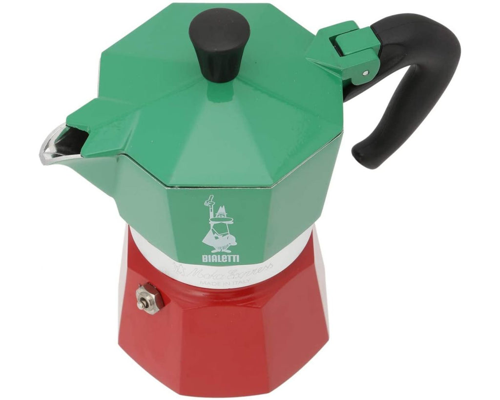 This specical edition Tricolor Italia Moka Express is painted red and green, to symbolise the colour of the Italian flag.