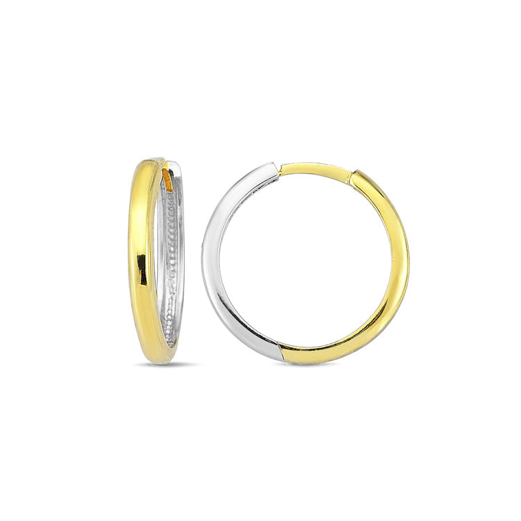 9K Yellow Gold & White Gold Fine Huggie Earrings 16mm