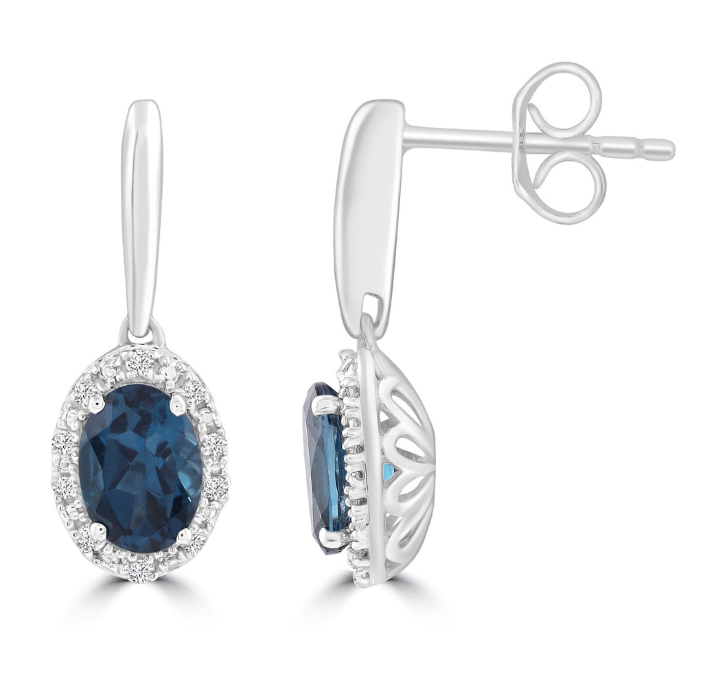 London Blue Topaz Earrings with 0.10ct Diamonds in 9K White Gold
