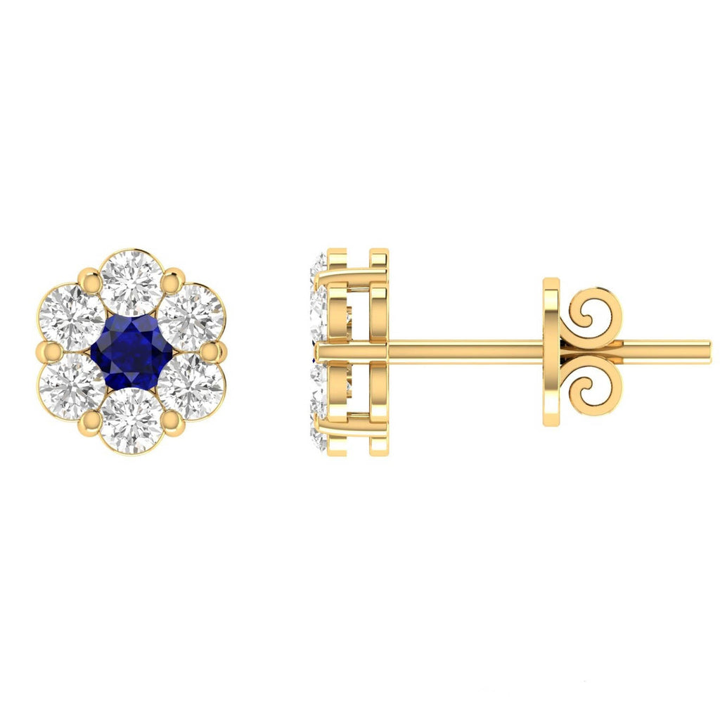A simplistic but sophisticated piece of jewellery, these Sapphire Diamond Stud Earrings ooze style. Features 0.19ct Diamonds in 9K Yellow Gold. Perfect for those warm summer days.