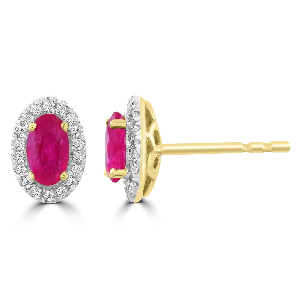 Ruby Stud Earrings with 0.10ct Diamonds in 9K Yellow Gold