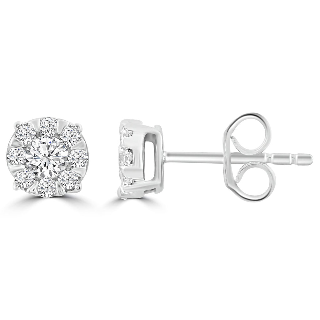 Simply Stunning, this pair of diamond stud earrings in white gold are made up of 18 diamonds, a total diamond weight of 0.25 carats which form an elegant round shape.