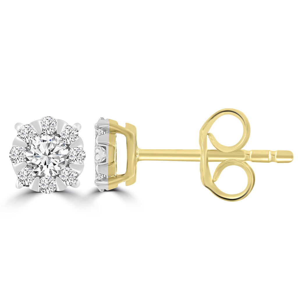 Simply Stunning, this pair of diamond stud earrings in yellow gold are made up of 18 diamonds, a total diamond weight of 0.25 carats which form an elegant round shape.