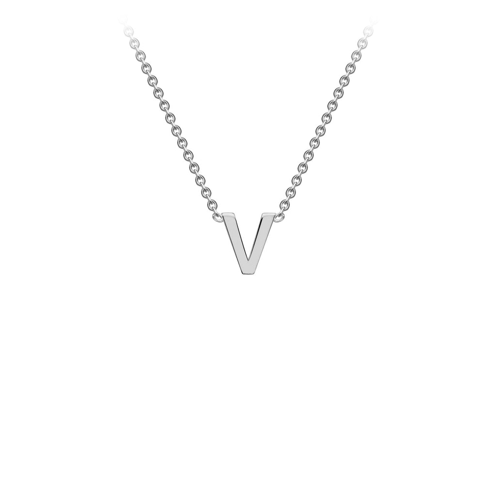 9K White Gold 'V' Initial Adjustable Letter Necklace 38/43cm