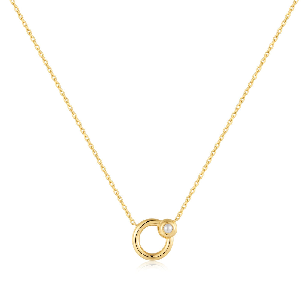 Adorn your neck with a new take on pearls with this effortlessly statement 14kt gold-plated sterling silver necklace. This delicate chain features a freshwater pearl paired with a silver hoop, perfect for stacking yours for a layered look.
