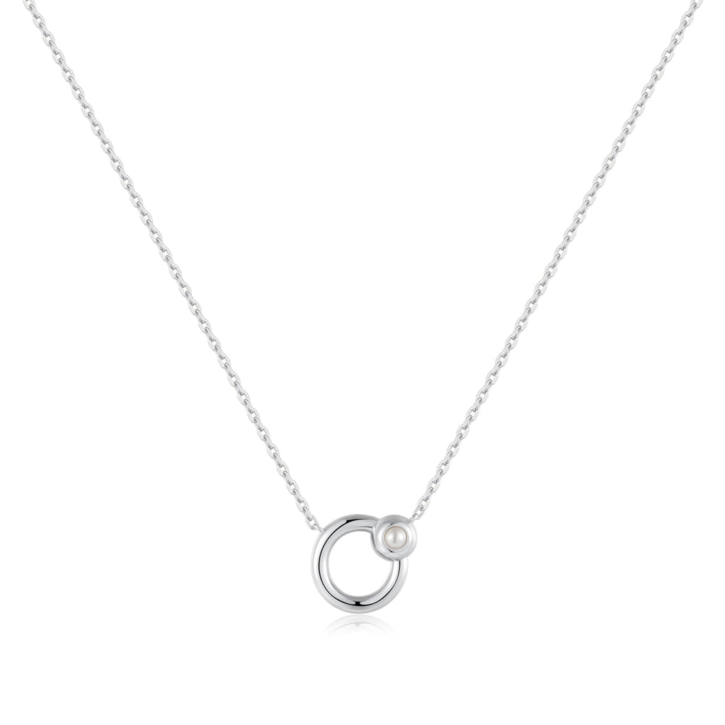 Adorn your neck with a new take on pearls with this effortlessly statement rhodium-plated sterling silver necklace. This delicate chain features a freshwater pearl paired with a silver hoop, perfect for stacking yours for a layered look.