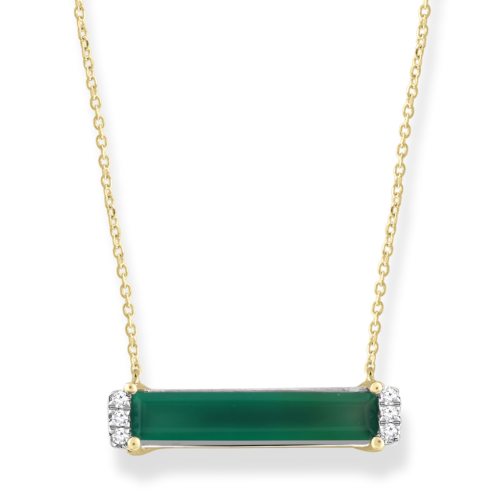 Diamond and Green Onyx Necklace with 0.05ct Diamonds in 9K Yellow Gold