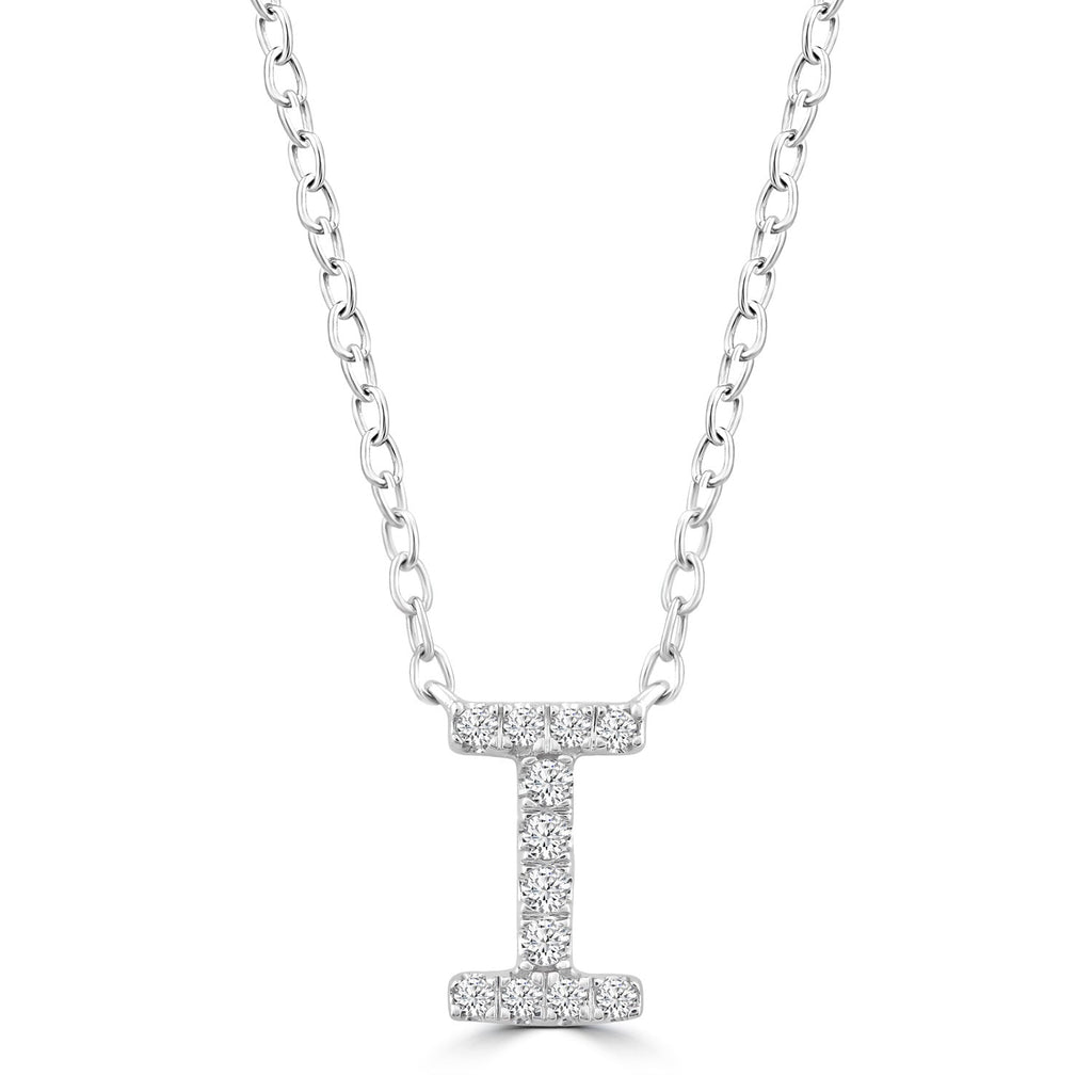 Initial 'I' Necklace with 0.06ct Diamonds in 9K White Gold