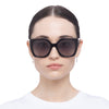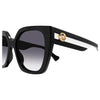 Oversized D-frame silhouette crafted from recycled acetate, featuring milled temples with web-inspired detailing and iconic Gucci logo. A timeless design with refined, modern elegance.