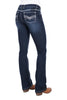 32 Inch leg - boot cut, stretch for comfort, mid rise, logo shank button, diamante rivets, signature design back pocket, feature embroidery on front scoop pockets and coin pocket, contrast all over topstitch.
