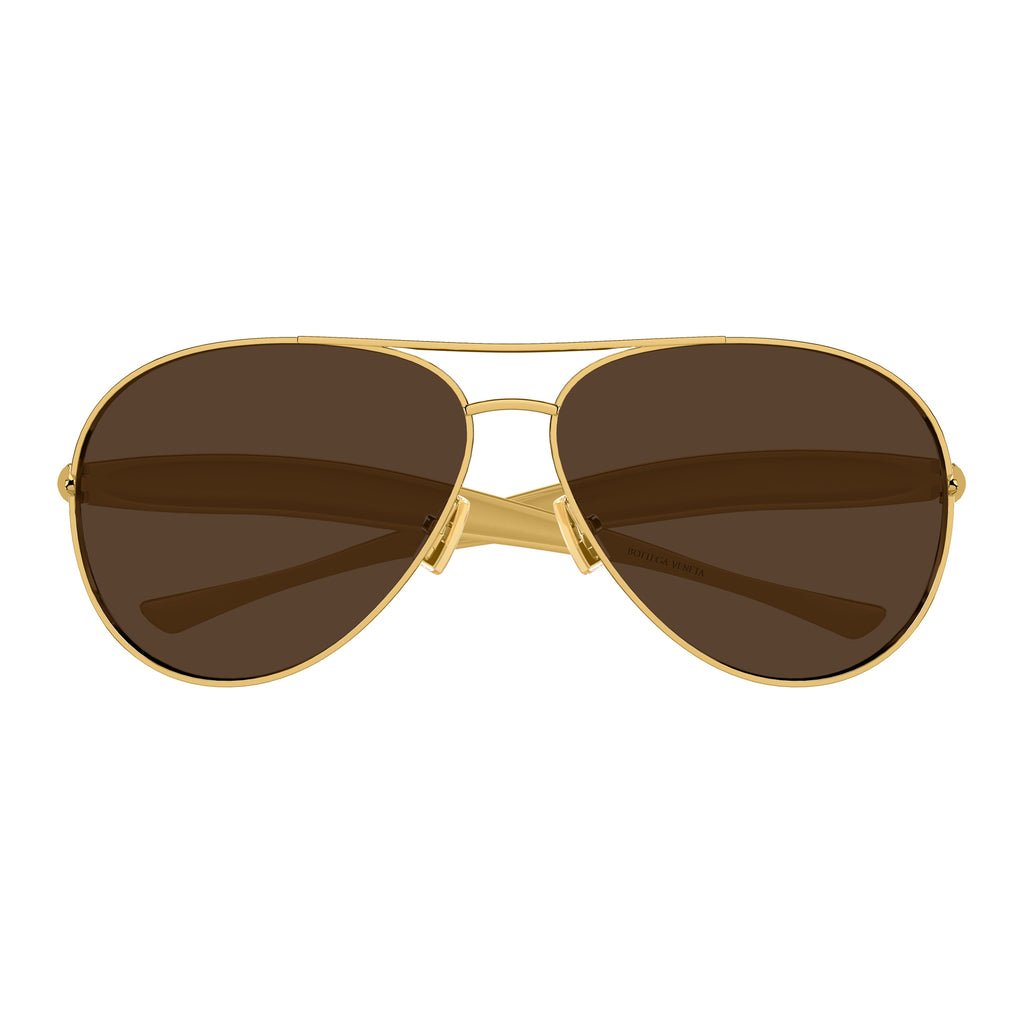 Full metal pilot style. Iconic sardine temple featuring very voluminous geometry and hollowed out from the inside to reduce its weight. Top bar with Bottega Veneta Logo in the top view.