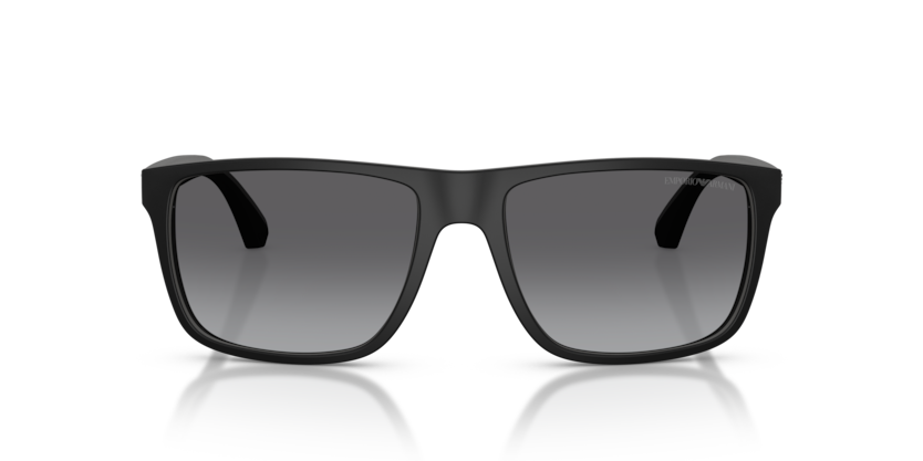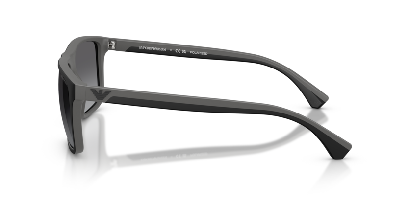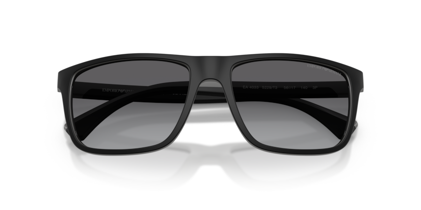Emporio Armani sunglasses for men model EA4033 featuring rubber black & grey full rim injection frame and base 6 decentered curve gradient grey polarized lens. High Bridge Fit. Frame line: Runway.