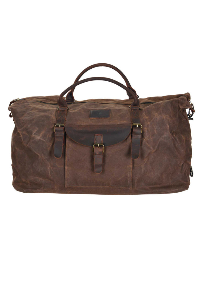 L 55cm, W 28cm, H 30cm, premium heavy-duty waxed cotton canvas with leather trims, detachable canvas strap, front patch pocket with leather straps, concealed magnetic snap closures, 2 internal patch pockets, 1 large pocket with zipper for security, antique brass metal accessories, classic Thomas Cook embossed leather badge.