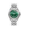 Watch with malachite dial: The twelve white zirconia stones, elegantly cut in baguette and marquise shapes as indices, are the highlight of this wristwatch with a malachite dial - each dial is unique thanks to the characteristic pattern of the stone. The hand-set zirconia stones and the trendy green colour give the dial a modern and elegant touch. The bezel has a high-quality fluted design.